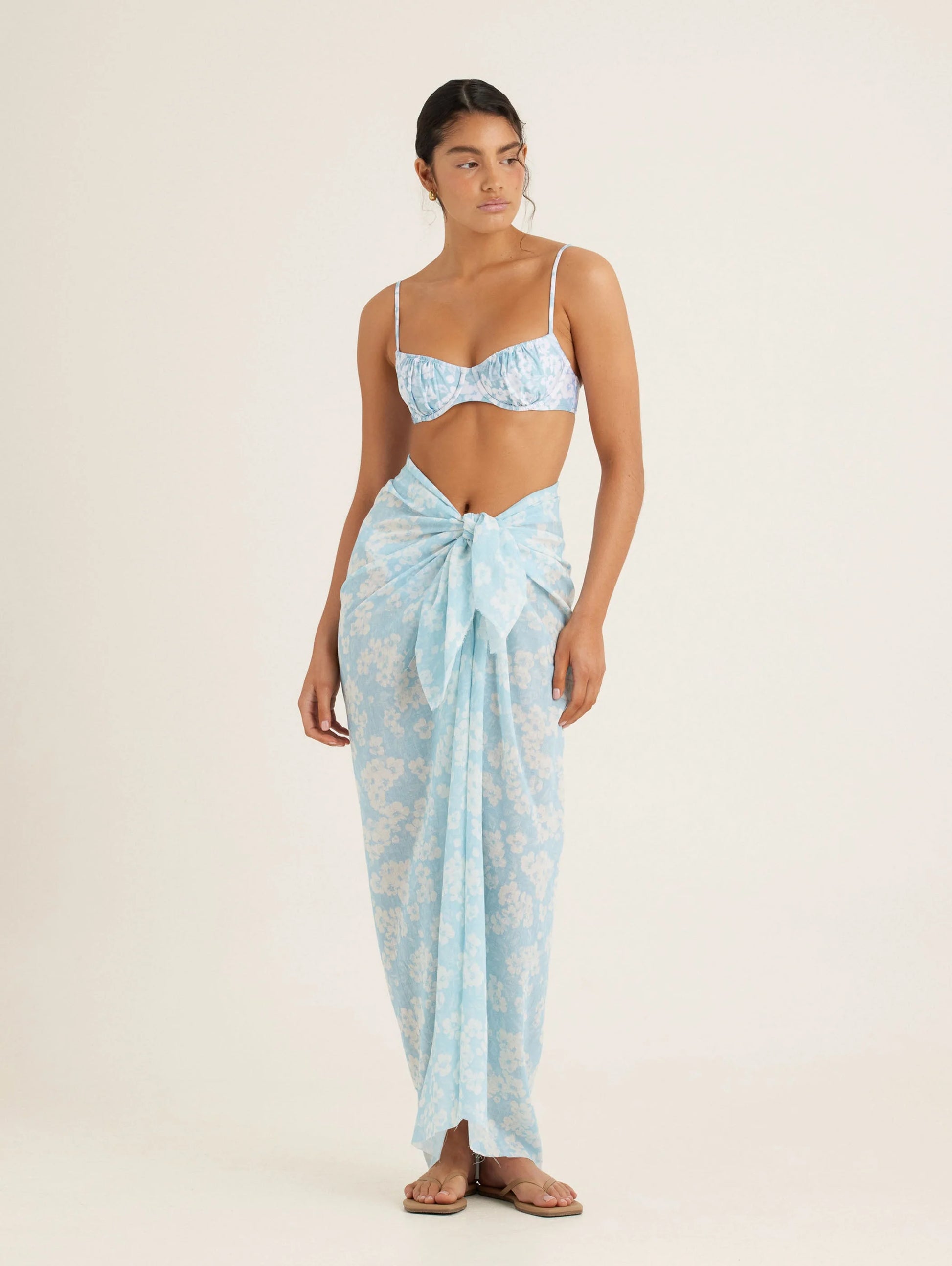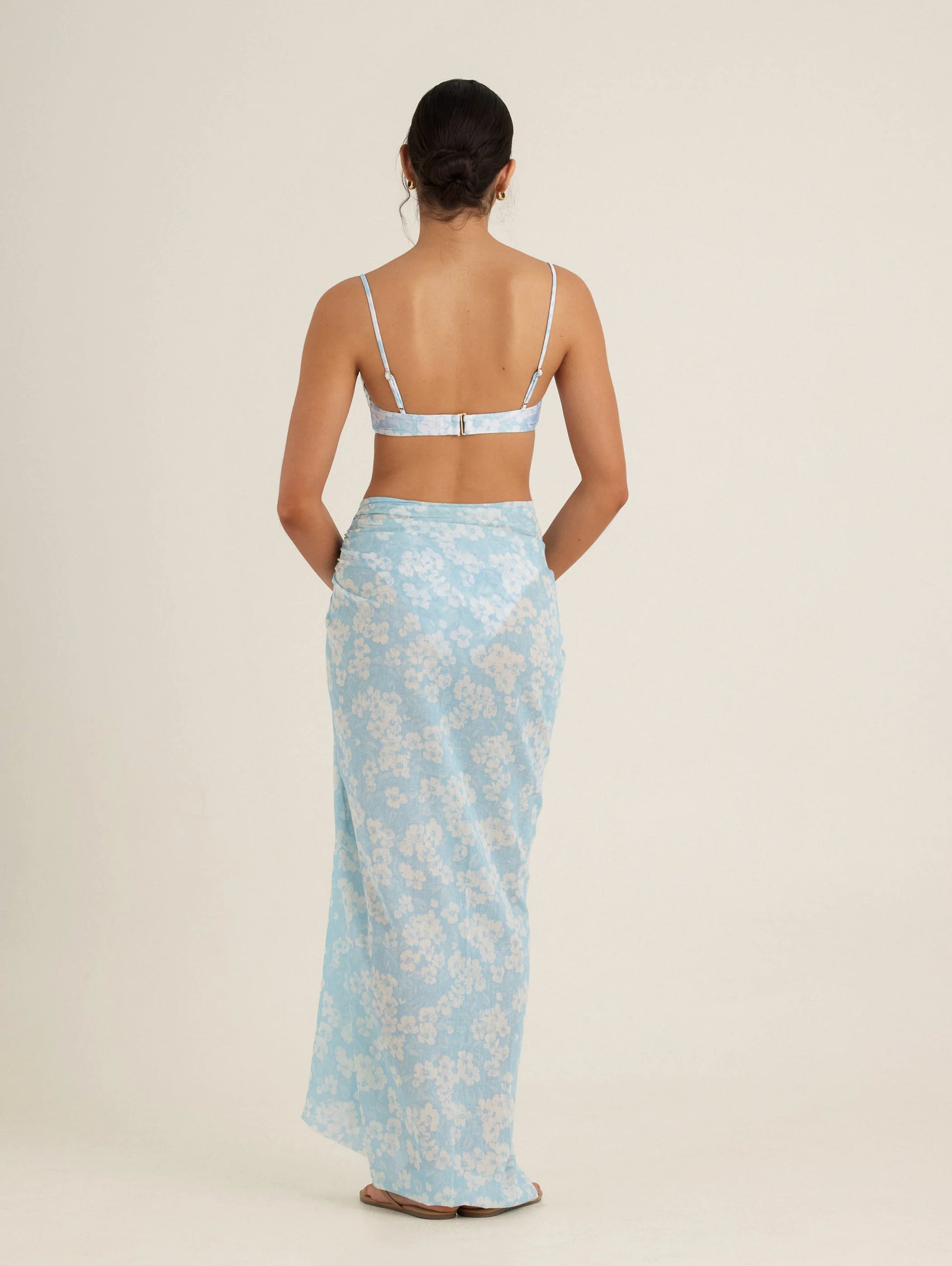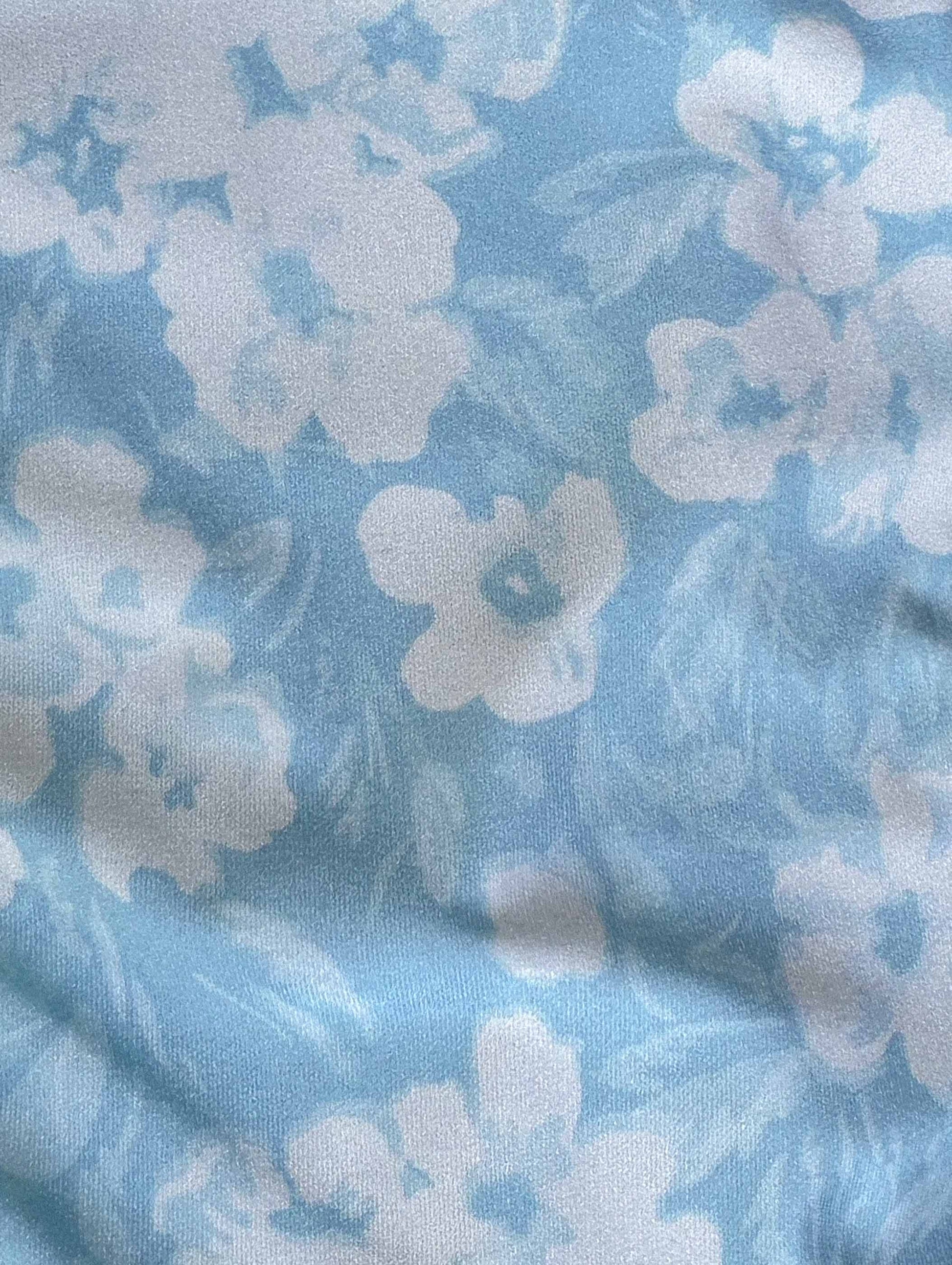 Top de bikini tipo balconette en estampado floral azul y blanco inspirado en flores delicadas de verano. Su diseño con copas estructuradas y detalle fruncido aporta soporte, realce natural y un ajuste favorecedor. Los tirantes delgados ajustables permiten personalizar el fit y brindan comodidad durante todo el día. Confeccionado en tela suave, elástica y de alta calidad que se adapta al cuerpo. Ideal como bikini elegante para playa, alberca o vacaciones junto al mar. Una pieza femenina, romántica y sofisticada perfecta para un look de verano fresco y chic.
