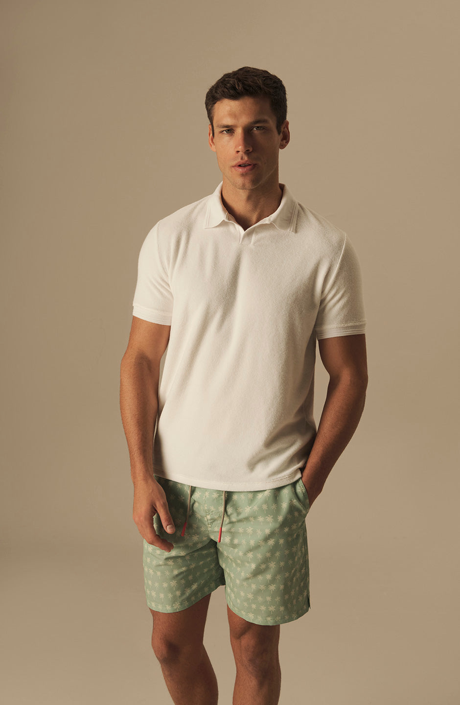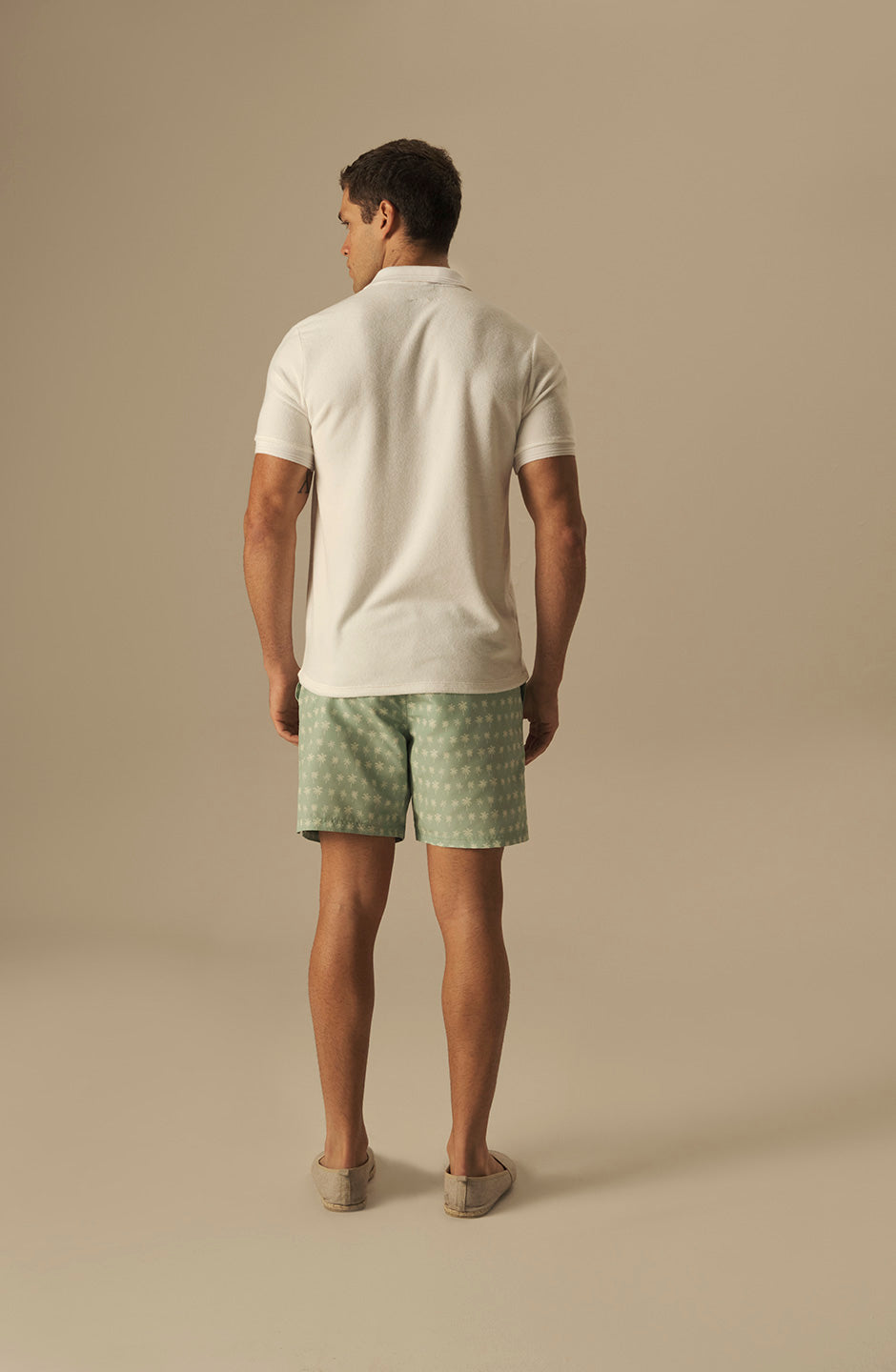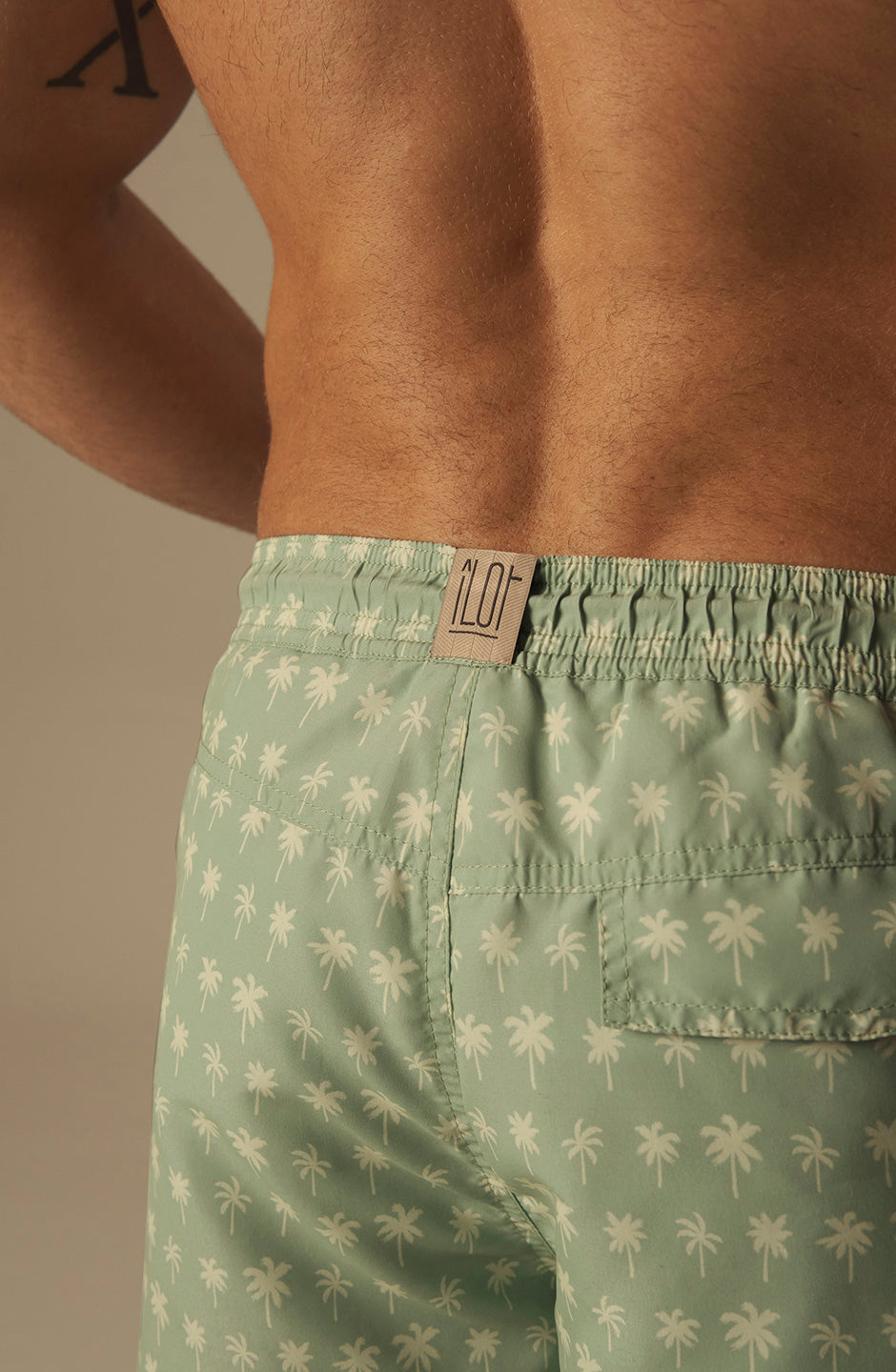 Esta elegante pantaloneta de baño “PALMS GREEN” ofrece un diseño impecable para quienes buscan estilo y funcionalidad en el entorno de playa o alberca.